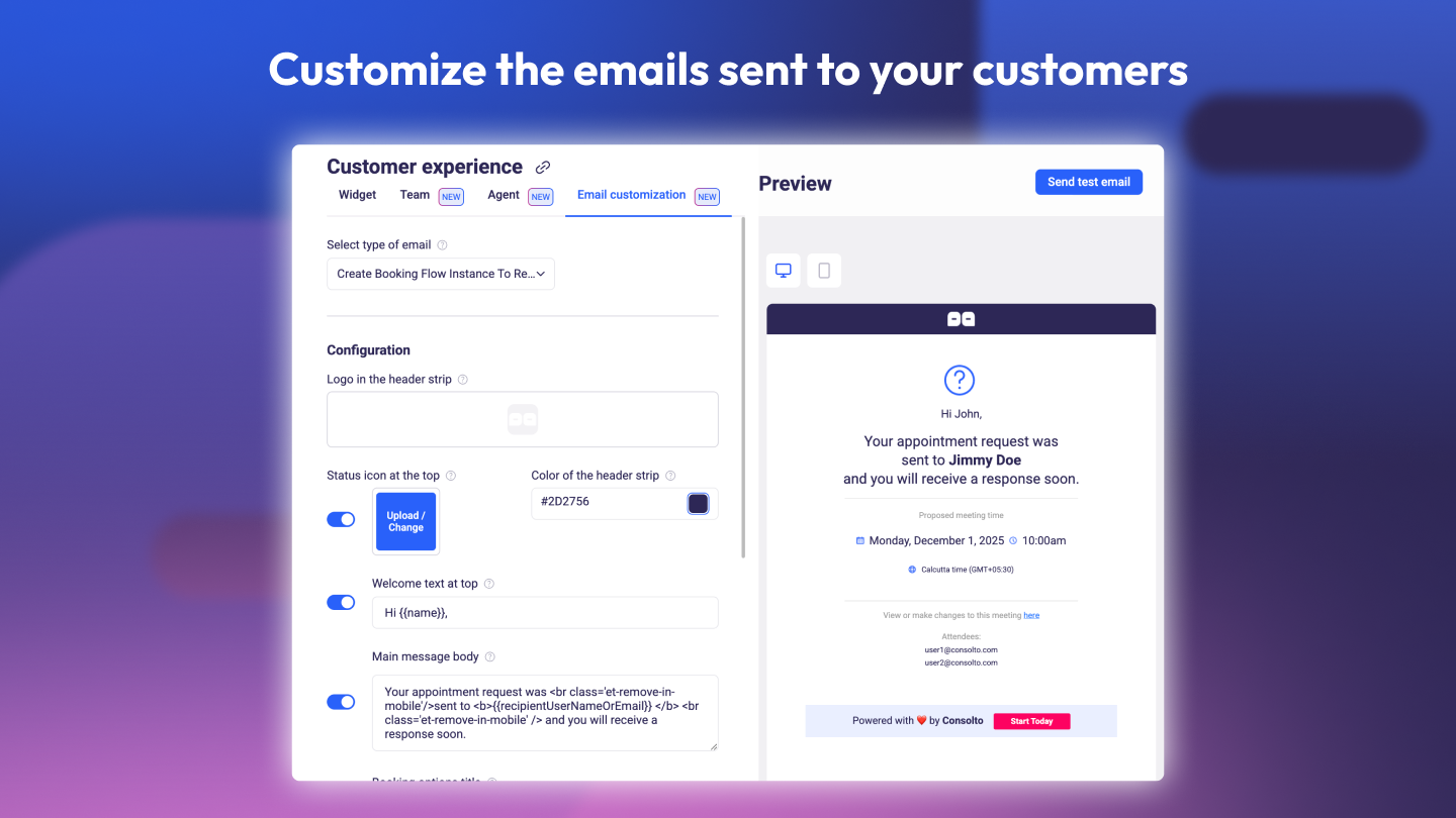 - Email customization - edit the emails Consolto sends to your customers when they book meetings or just wait for your next reply.