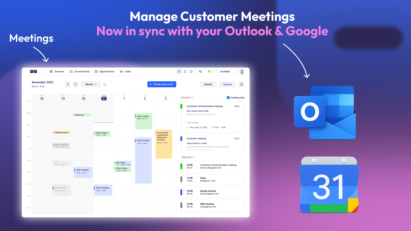 2. Outlook calendar integration - add a 2-way sync with your Outlook calendar with ease. Google 2-way sync there for you googlers.